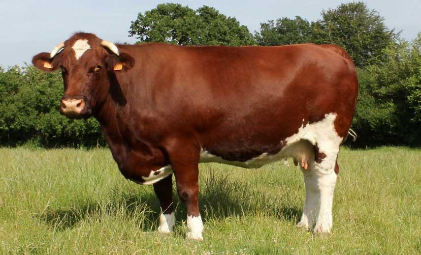 رنگ آن قرمز تیره و سفید میباشد و دارای رنگدانههای روشنی بر روی پوست خود هستند. این نژاد دارای شاخ با اندازه متوسط میباشد که به سمت جلو پیچش دارد و حیوانی آرام بوده و به راحتی دستآموز میگردد.